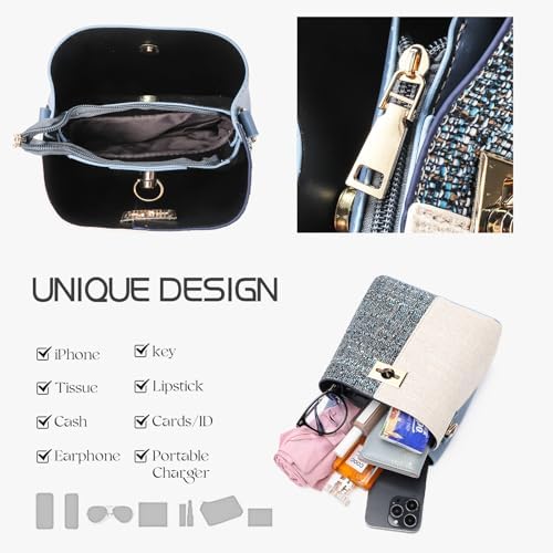 PINCNEL Cross Body Bag Purses for Women - PU Leather Crossbody Bucket Bag with Adjustable Shoulder Strap, Multiple Pockets