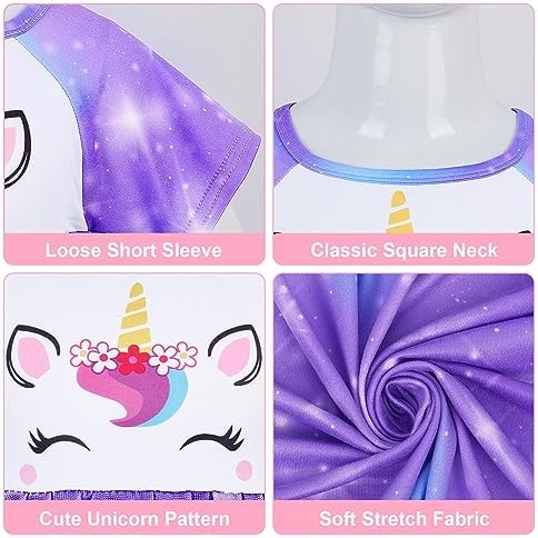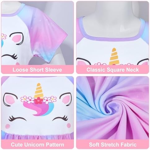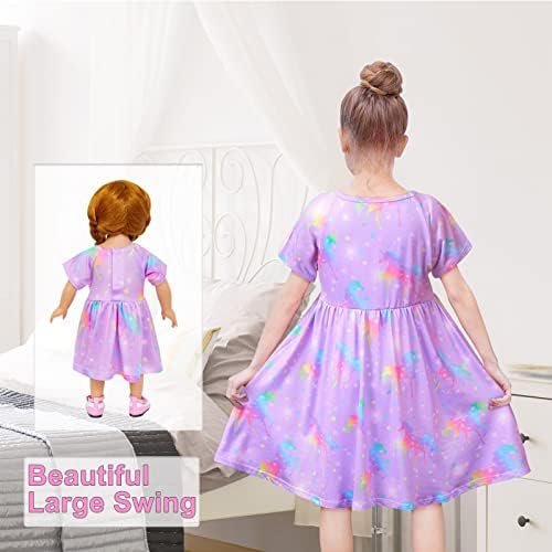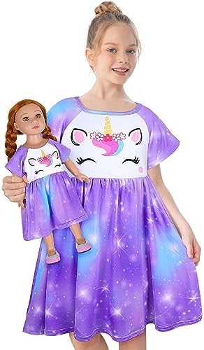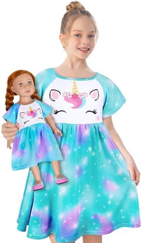 Play Tailor Doll and Girl Matching Nightgown Unicorn Outfit Pajamas Night Dress for Girls and 18" Dolls Clothes