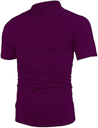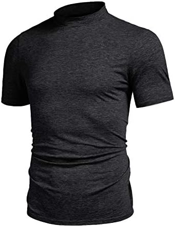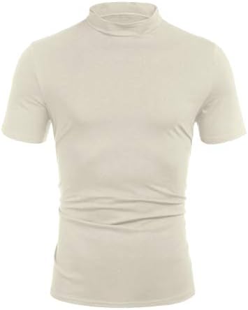 Poriff Mens Casual Turtleneck Mock Neck T Shirt Slim Fit Short Sleeve Summer Basic Tops