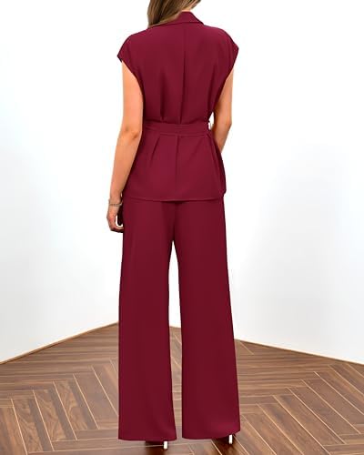 PRETTYGARDEN Women's Summer 2 Piece Outfits 2024 Cap Sleeve V Neck Blazer Vest Wide Leg Pant Sets Office Work Clothes