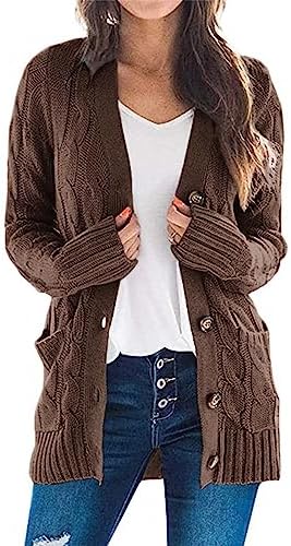 PRETTYGARDEN Womens Open Front Cardigan Fashion Button Down Cable Knit Chunky Outwear Coats