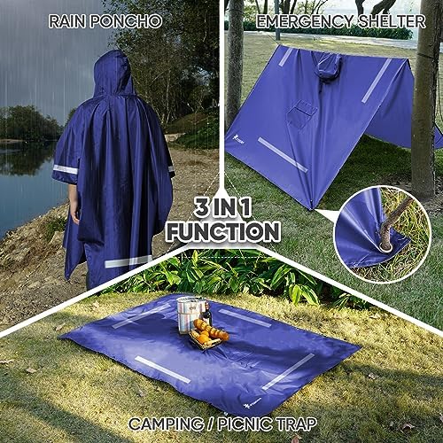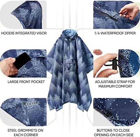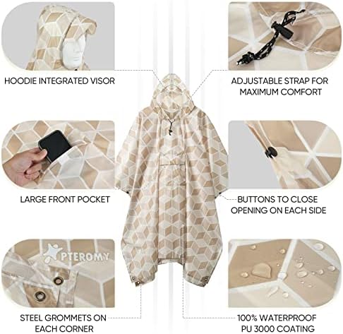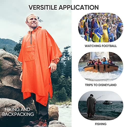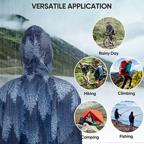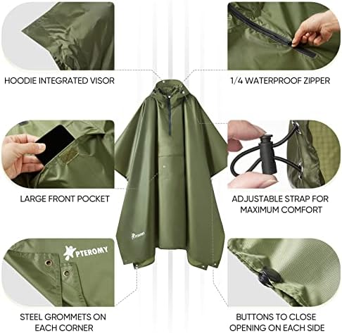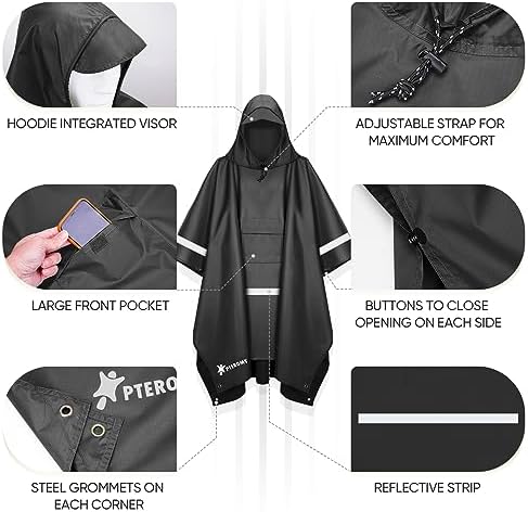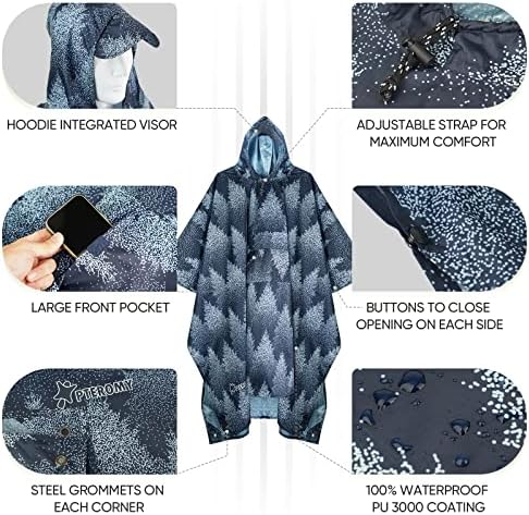 PTEROMY Hooded Rain Poncho for Adult with Pocket, Waterproof Lightweight Unisex Raincoat for Hiking Camping Emergency
