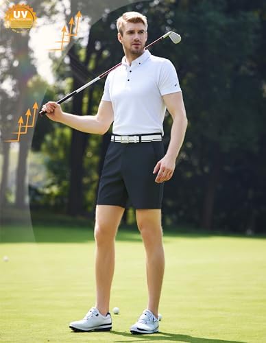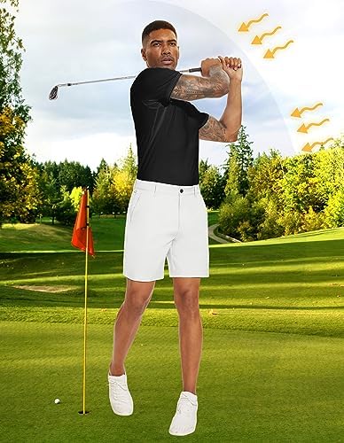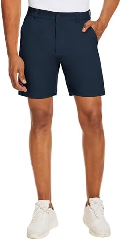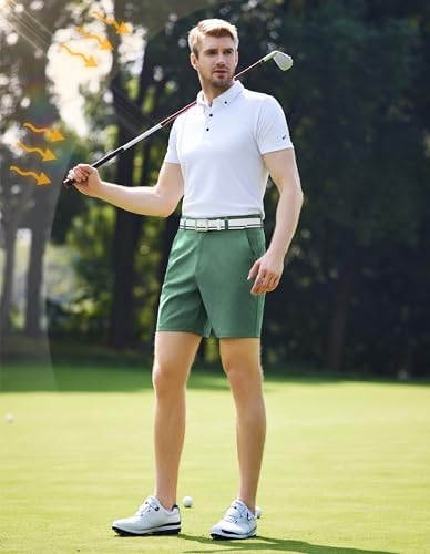 PULI Men's Golf Dress Shorts Flat Front Hybrid 7 Inch Lightweight Quick Dry Chino Casual with Pockets
