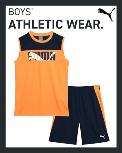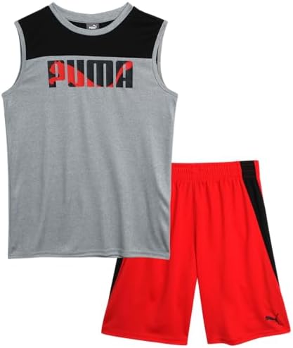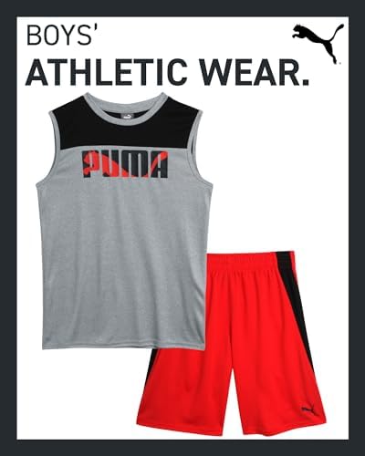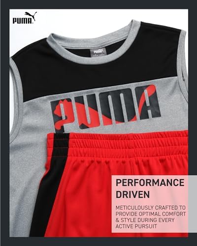 PUMA Boys' Active Shorts Set - 2 Piece Dry Fit Muscle Tank Top and Performance Gym Shorts - Activewear Set for Boys (S-L)