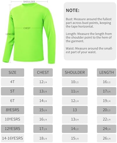 QBK 4T to Youth Neon Shirt Kids UPF 50+ Dry Fit Athletic Long Sleeve T Shirts for Boys and Girls