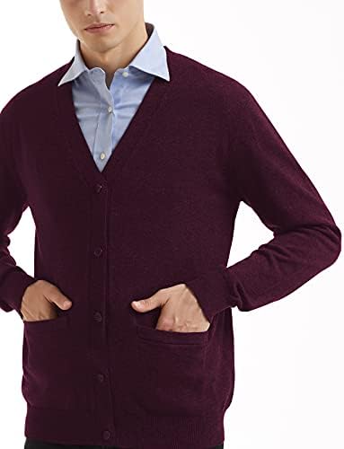 Kallspin Men's Cardigan Sweater Wool Blend Cable Knit V Neck Buttons Cardigan with Pockets