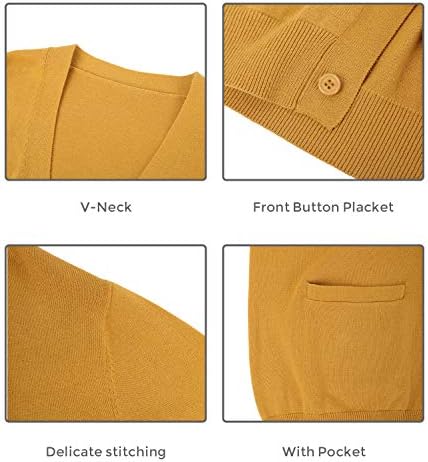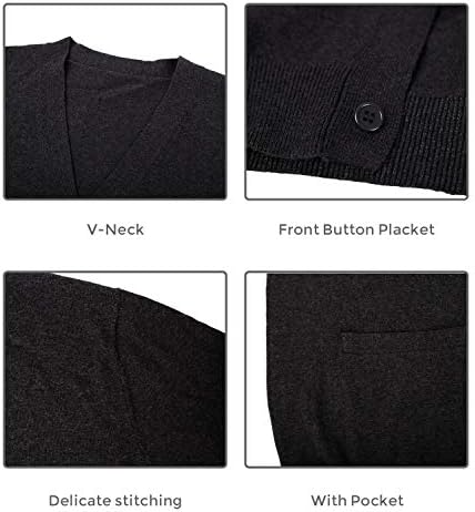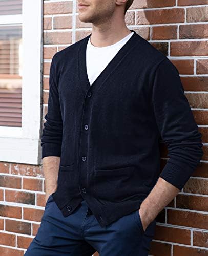 QUALFORT Mens Cardigan Sweater 100% Cotton Pockets Casual Slim Fit V-Neck Knitted Sweaters Button up
