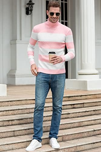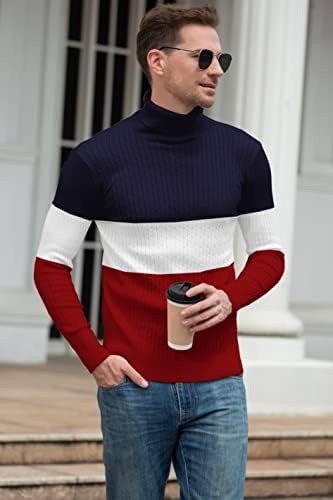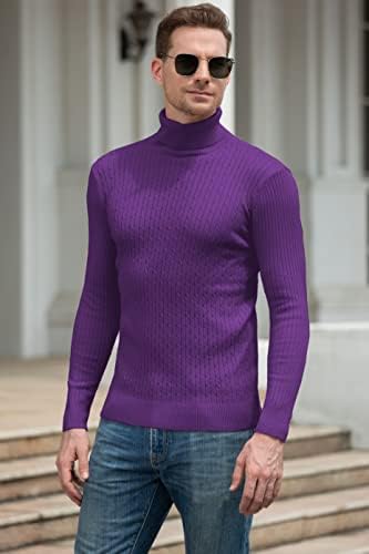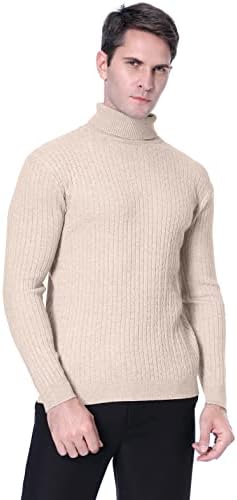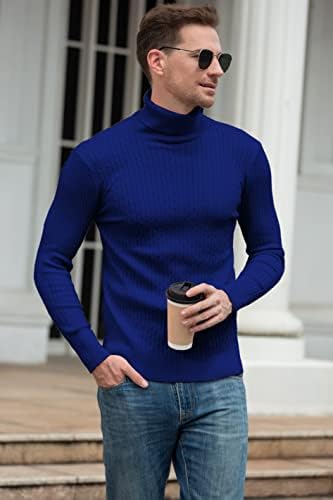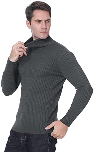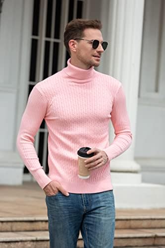 QZH.DUAO Men's Casual Slim Fit Turtleneck Pullover Sweaters with Twist Patterned