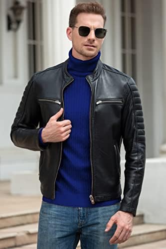 Jild Polo Collar Premium Leather Jacket Men - Old School Classic Style Everyday Wear Real Lambskin Mens Leather Jacket