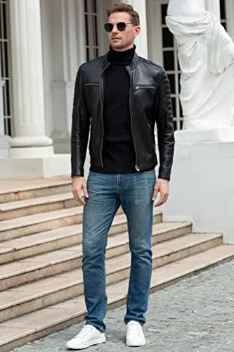 Fahsyee Leather Jackets for Men, Faux Bomber Jacket Men Motorcycle Lapel Asymmetric Zip-Up Blet Slim Fit Biker Coat