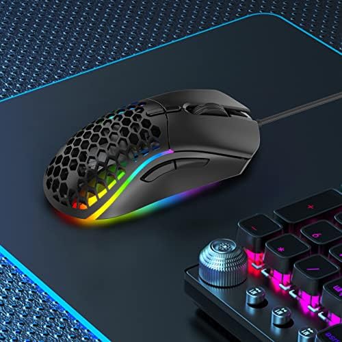 Honeycomb Wired Gaming Mouse, USB/USB-C PC Game Mice with RGB Backlight, 6 Programmable Buttons, 6 Adjustable DPI Up to 7200 for Windows/PC/Mac/Laptop Gamer -Black