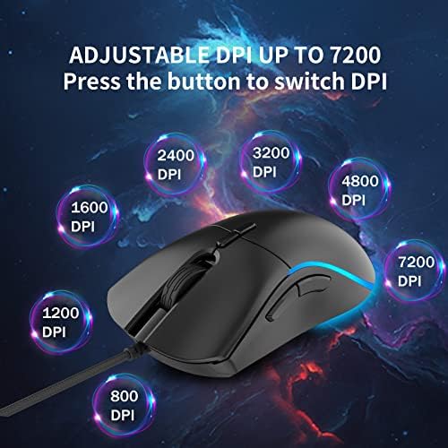 RaceGT Wired RGB Gaming Mouse, Ergonomic Mouse with 7 Backlight RGB Lighting Modes, up to 3600 DPI,6 Buttons for Windows/PC/Mac/Laptop Gamer (Black)