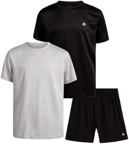 RBX Boys' Active Shorts Set - 3 Piece Performance T-Shirt and Woven Gym Shorts - Kids' Activewear Set for Boys (4-12)