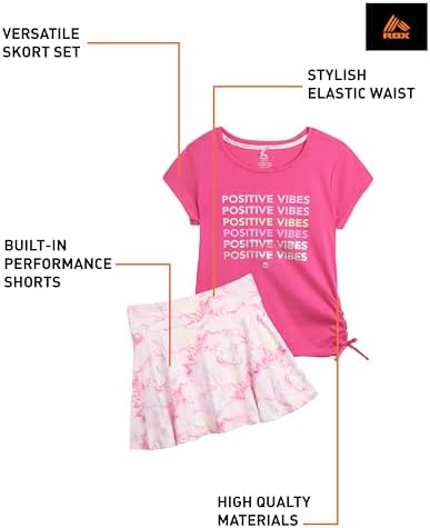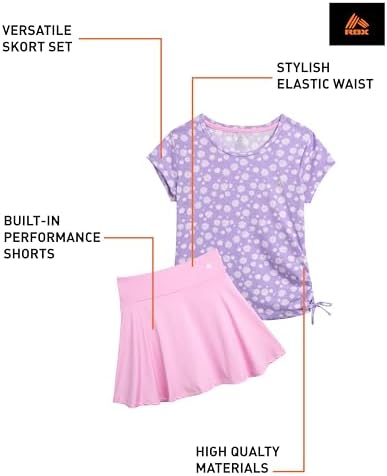 RBX Girls' Skort Set - 2 Piece Tennis Short Sleeve Performance T-Shirt and Scooter Skirt (7-12)
