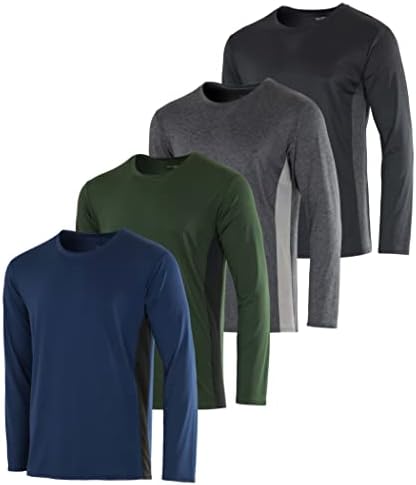 Real Essentials 4 Pack: Men's Dry-Fit UV Moisture Wicking UPF 50+ SPF Sun Protective Fishing Hiking Swim Long Sleeve Shirt