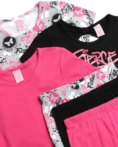 Real Love Girls' Active Shorts Set - 6 Piece Fashion T-Shirts and Performance Bike Shorts - Summer Outfit for Girls (7-16)