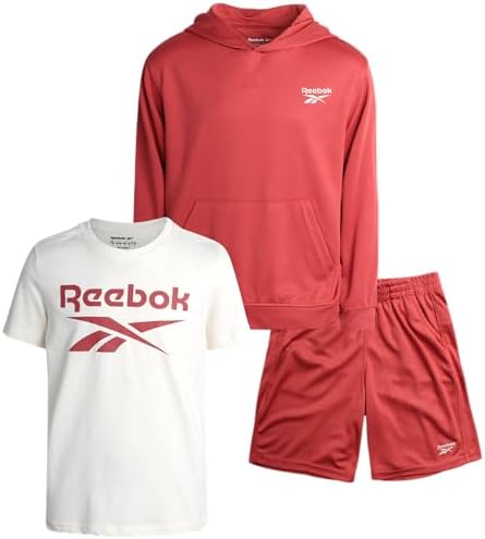Reebok Boys' Active Shorts Set - 3 Piece Performance Mesh Hoodie Sweatshirt, Gym Shorts, and T-Shirt - Activewear Set (8-12)