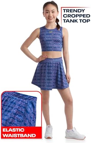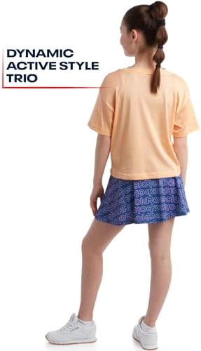 Reebok Girls' Active Skirt Set - 3 Piece Mesh T-Shirt, Crop Tank Top, and Athletic Skort - Girls Summer Activewear Set (7-12)