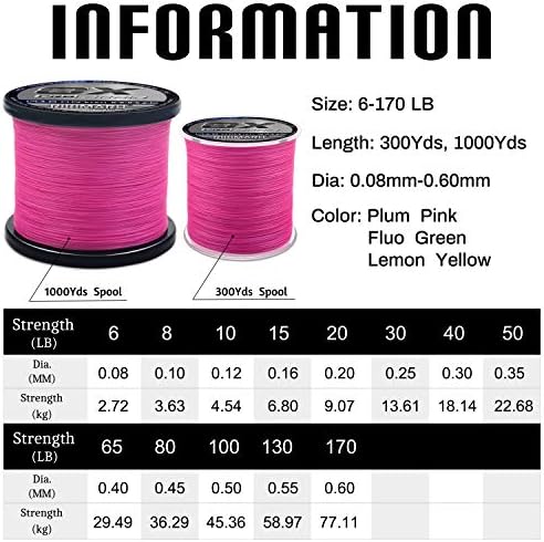 Rikimaru 8X Pro Braid Fishing Line 6LB-170LB, 300yds-1000yds Fluo-Green,Lemon Yellow,Plum Pink