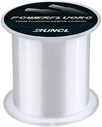 RUNCL Fluorocarbon Fishing Line, PowerFluoro Clear Fishing Leader Line - Virtually Invisible, Faster Sinking, Extra Sensitivity, 300-1000yds, 5-32lb Break Strength