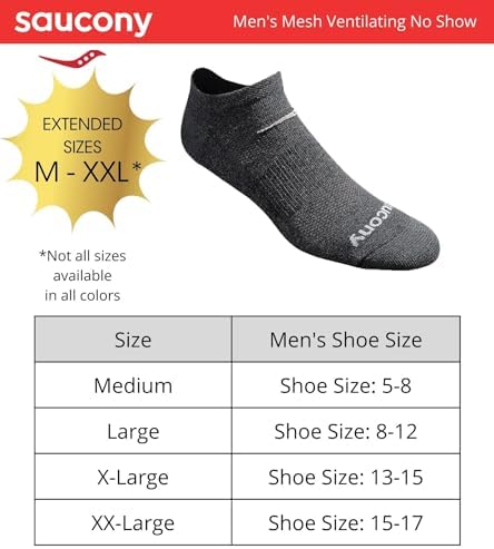Saucony Men's Multi-Pack Mesh Ventilating Comfort Fit Performance No-Show Socks