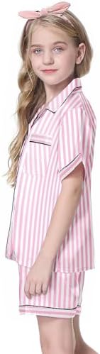 Schbbbta Girls Womens Pajamas, Satin Silky Pjs Set Kids 2Pcs Button-Down Nightwear Sleepwear Gift for Mommy and me