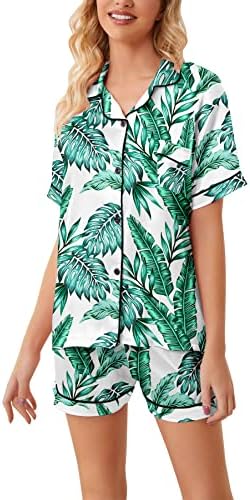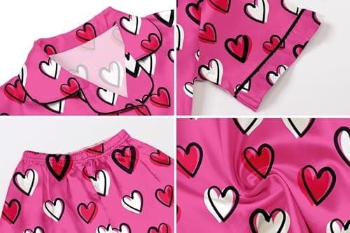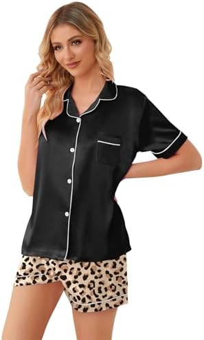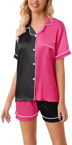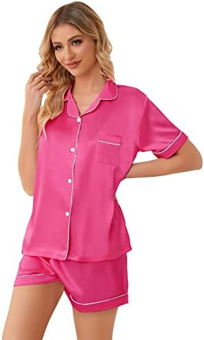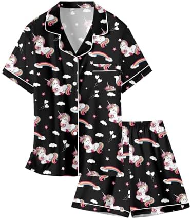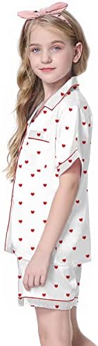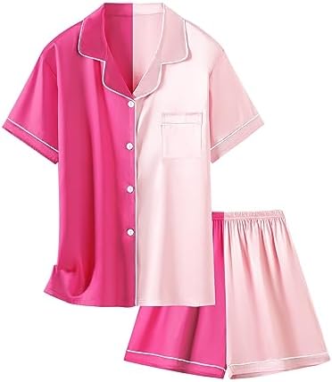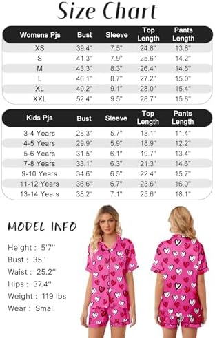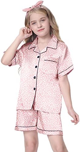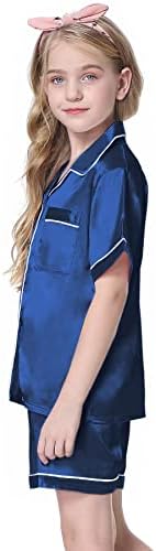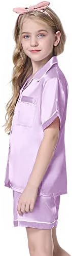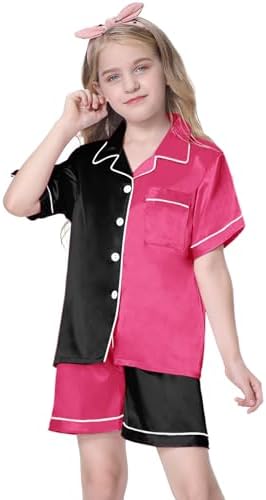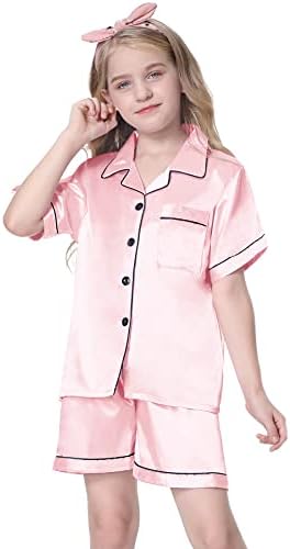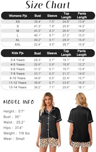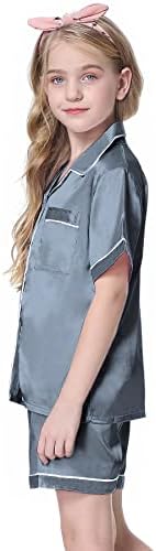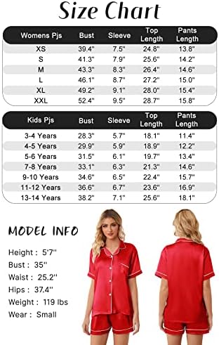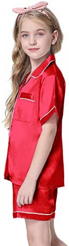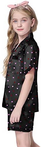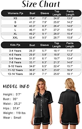 Schbbbta Girls Womens Pajamas, Satin Silky Pjs Set Kids 2Pcs Button-Down Nightwear Sleepwear Gift for Mommy and me