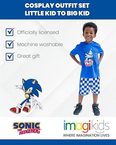 SEGA Sonic the Hedgehog Cosplay T-Shirt and Mesh Shorts Outfit Set Little Kid to Big Kid