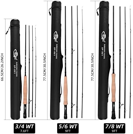 SF SF-001 Fly Fishing Rod 4 Piece 3/4wt 7.6ft, 5/6wt 7/8wt 9ft Matt Black Trout Fly Rod IM7 Carbon Fiber Blank Chromed Guide and Durable Rod Tube for New and Younger Anglers