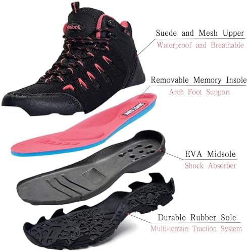 SHULOOK Women's Hiking Boots Waterproof Lightweight Outdoor Trekking Camping Hiking Shoes