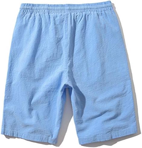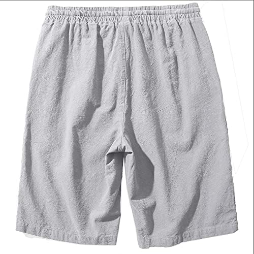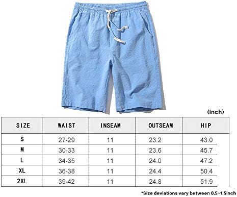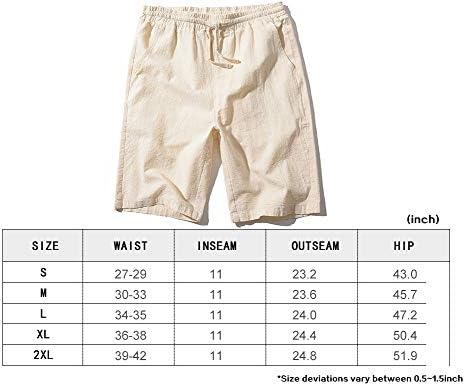 SIR7 Men's Linen Casual Classic Fit 11 Inch Inseam Elastic Waist Shorts with Drawstring