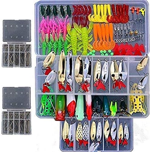 Smartonly1 Set 226Pcs Fishing Lure Tackle Kit Bionic Bass Trout Salmon Pike Fishing Lure Frog Minnow Popper Pencil Crank Soft Hard Bait Fishing Lure Metal Spoon Jig Lure with Fishing Tackle Box