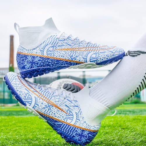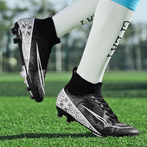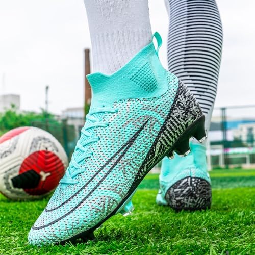 Soccer Cleats for Mens Womens Turf Soccer Shoes Indoor Footall Cleats High Ankle TF AG FG Football Boots Wide Training Sneaker