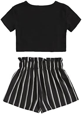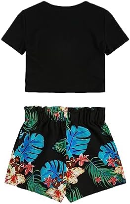 SOLY HUX Girl's Summer 2 Piece Outfits Short Sleeve Crop Top and Cute Print Shorts Sets Cute Clothing Set