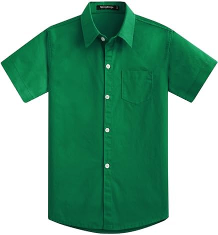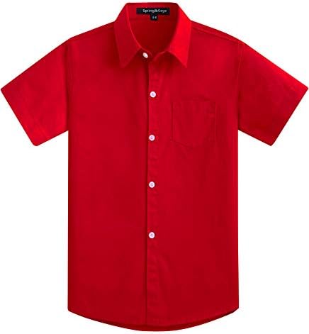 Spring&Gege Boys' Short Sleeve Dress Shirts Formal Uniform Woven Solid