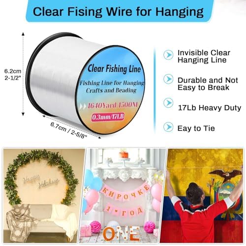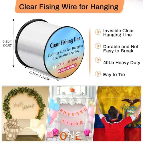 Strong Fishing Line Clear, Acejoz Fishing Wire 0.3mm, 0.45mm, 0.8mm Invisible Hanging Wire Nylon String Heavy Duty Monofilament Line for Hanging Decoration Balloon Garland Crafts