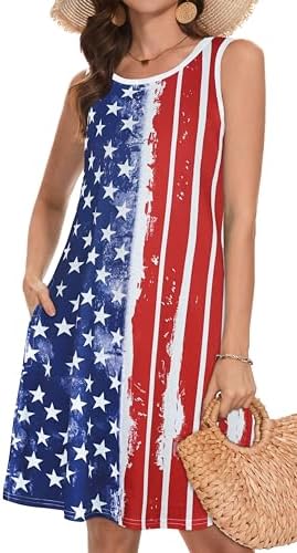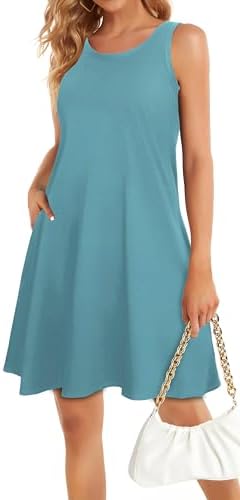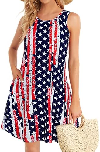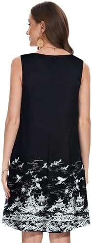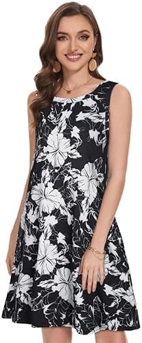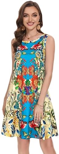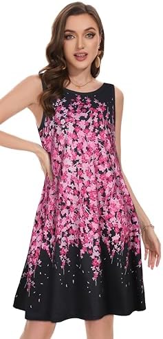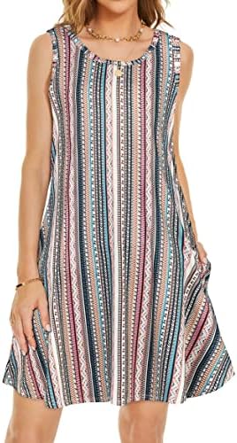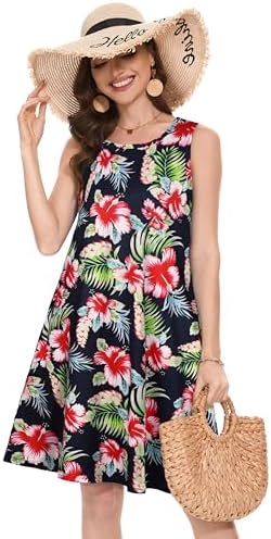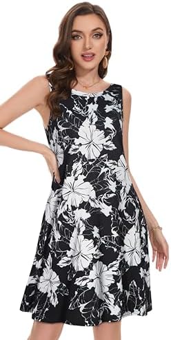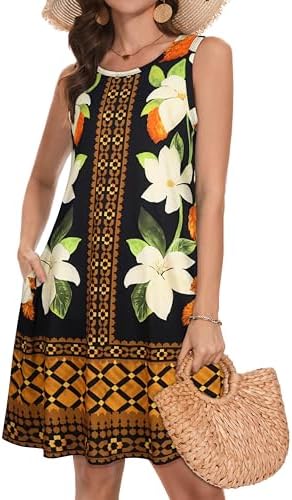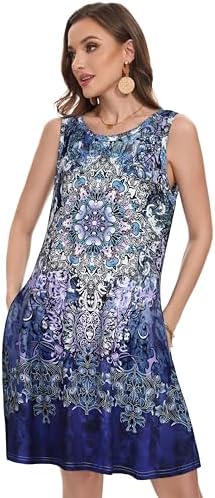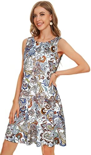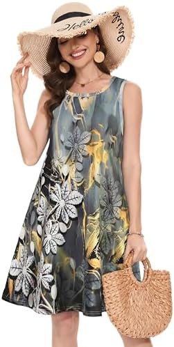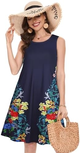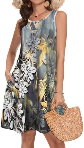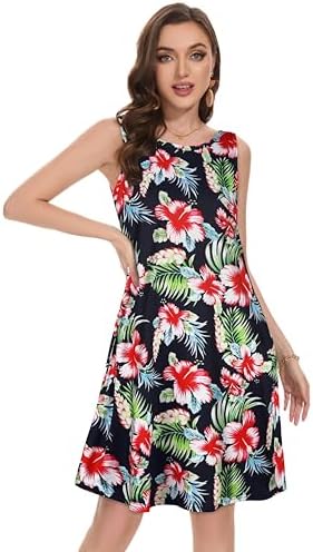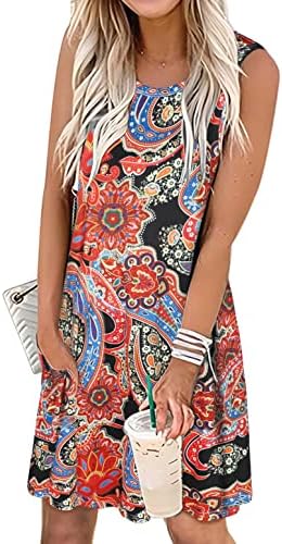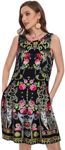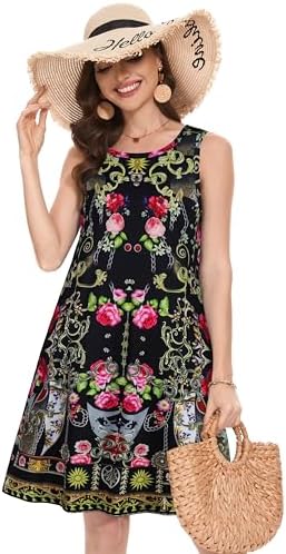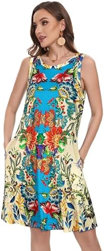 Summer Dresses for Women Beach Boho Sleeveless Vintage Floral Flowy Pocket Tshirt Tank Sundresses