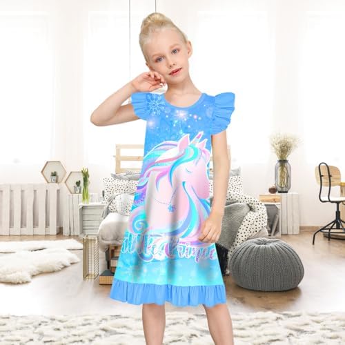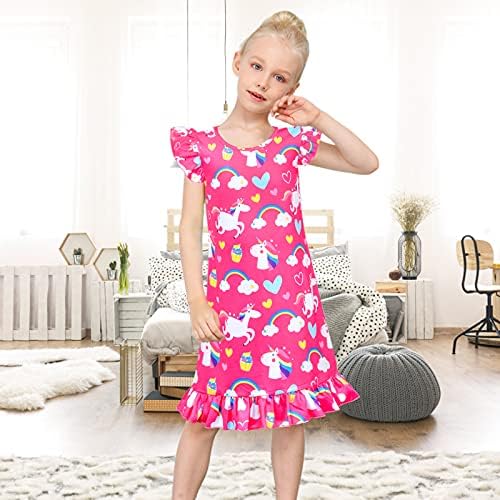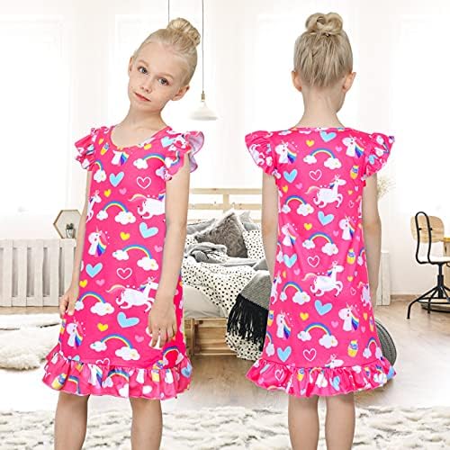 Sylfairy 2pcs Girls Nightgowns, Unicorn Nightgown Princess Pajama Dresses for Girls Sleepwear Nightie