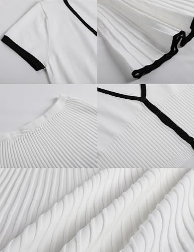 Tanming Women's Two Piece Skirt Set Casual Short Sleeve Crop Top Ribbed Knit Midi Pleated Skirt
