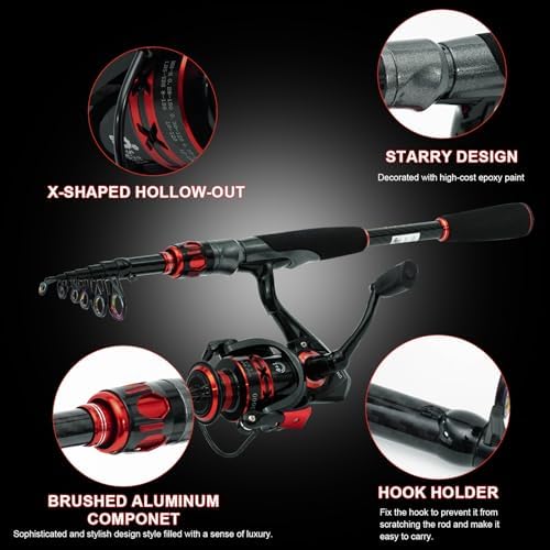 PLUSINNO Telescopic Fishing Rod and Reel Combos Full Kit, Carbon Fiber Fishing Pole, 12 +1 Shielded Bearings Stainless Steel BB Spinning Reel