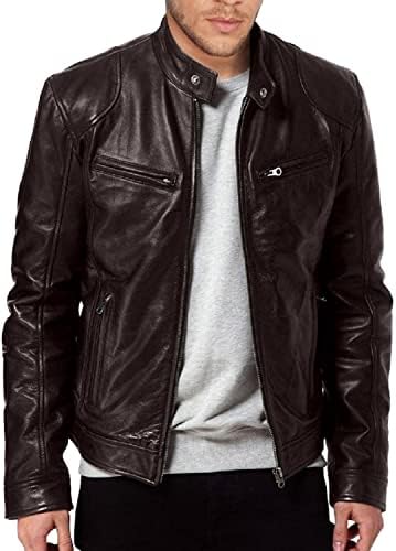 Fahsyee Leather Jackets for Men, Faux Bomber Jacket Men Motorcycle Lapel Asymmetric Zip-Up Blet Slim Fit Biker Coat