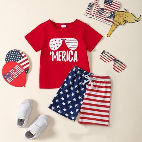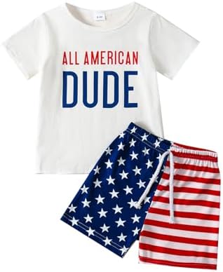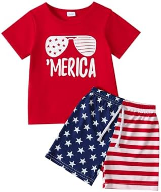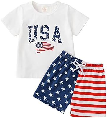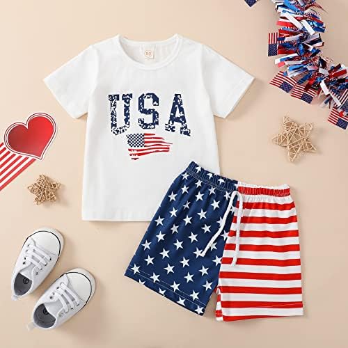 Toddler Boy 4th of July Outfit Short Sleeve T-shirt Top+American Flag Shorts Baby Boy Independence Day Clothes