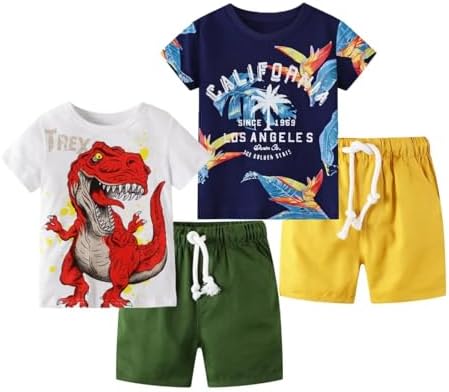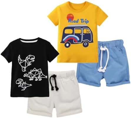 Toddler Boy Summer Clothes Outfits Kids Cotton Short Sleeve Shirt Shorts Set 2-7 Years
