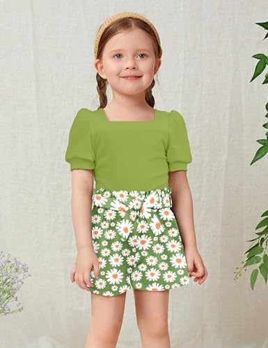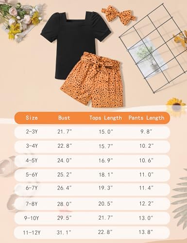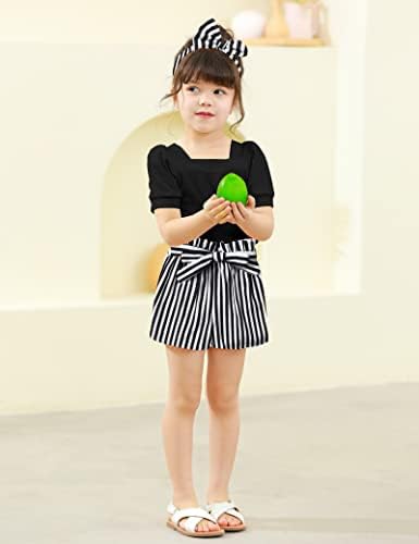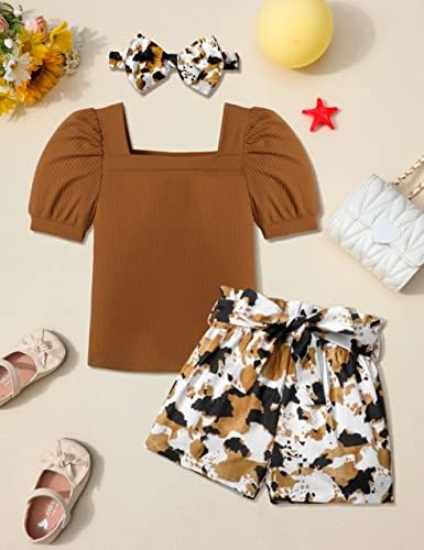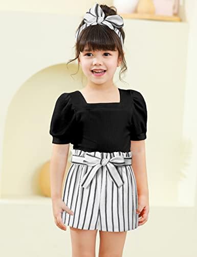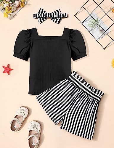 Toddler Girl Clothes 2-12Y Girls Clothes Square Neck Short Sleeve Tops 3pcs Short Sets Summer Girls Outfits
