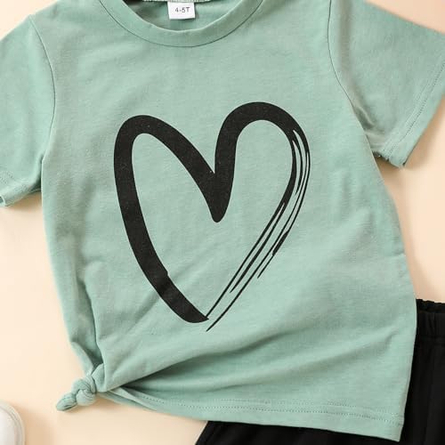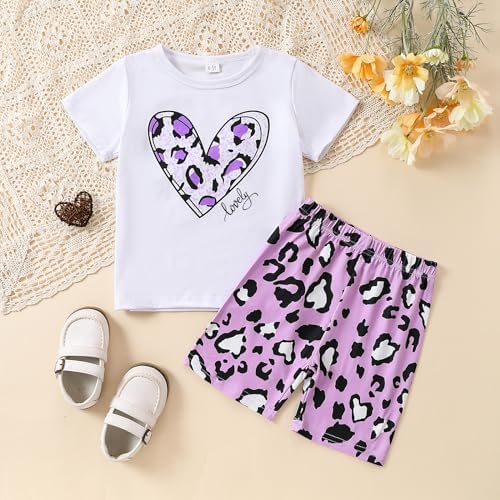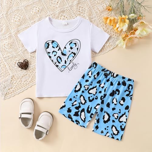 Toddler Kid Girl Clothes Heart Print Short Sleeves Top + Shorts 2PC Summer Outfit Set