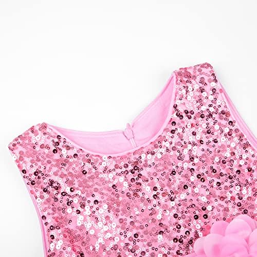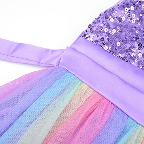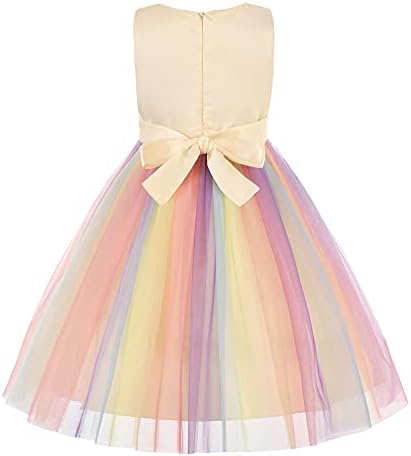 Uhnice Little Girl's Sequin Sleeveless Mesh Rainbow Dress for Wedding Party