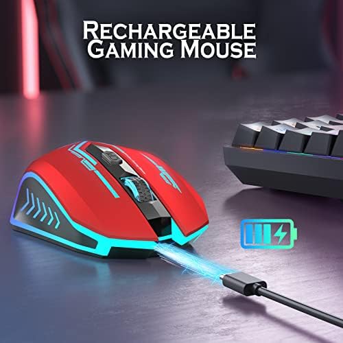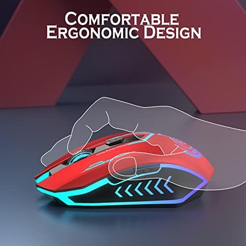 UHURU Wireless Gaming Mouse Up to 10000 DPI, Rechargeable USB Wireless Mouse with 6 Buttons 7 Dynamic LED Color Ergonomic Programmable MMO RPG for PC Laptop, Compatible with Windows Mac