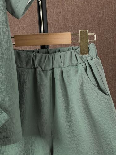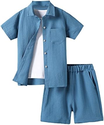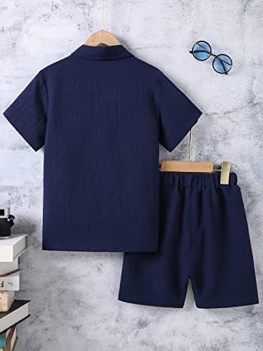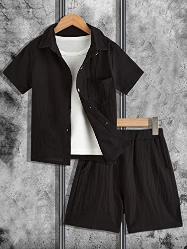 Verdusa Boy's 2 Piece Outfit Button Down Shirt and Elastic Waist Short Sets
