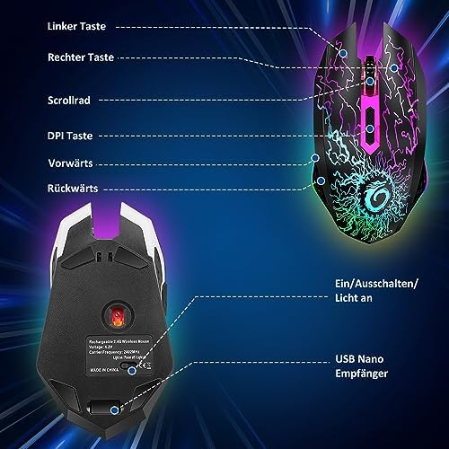VersionTECH. Wireless Gaming Mouse, Rechargeable Computer Mouse Mice with Colorful LED Lights, Silent Click, 2.4G USB Nano Receiver, 3 Level DPI for PC Gamer Laptop Desktop Chromebook Mac-Black