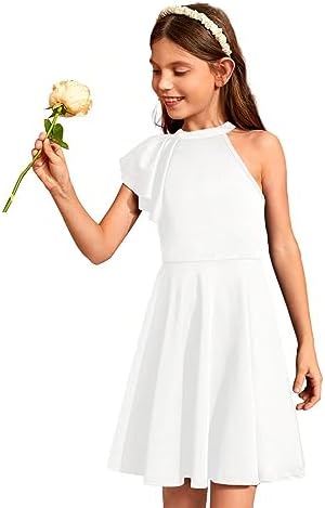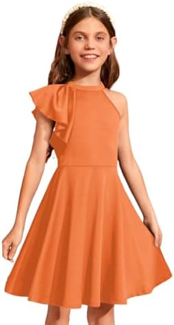 Arshiner Girls Dresses Square Neck Cut Out Shirred Party Cute Tween Dress